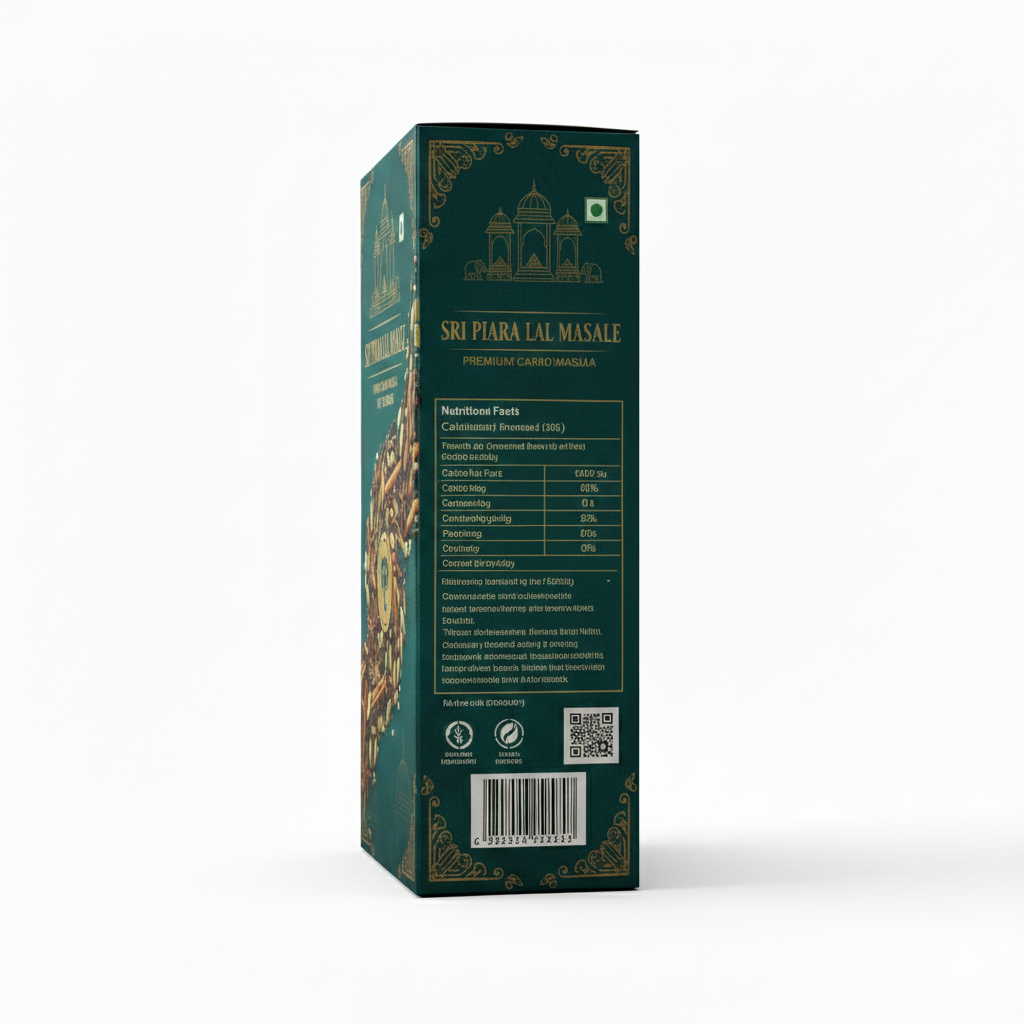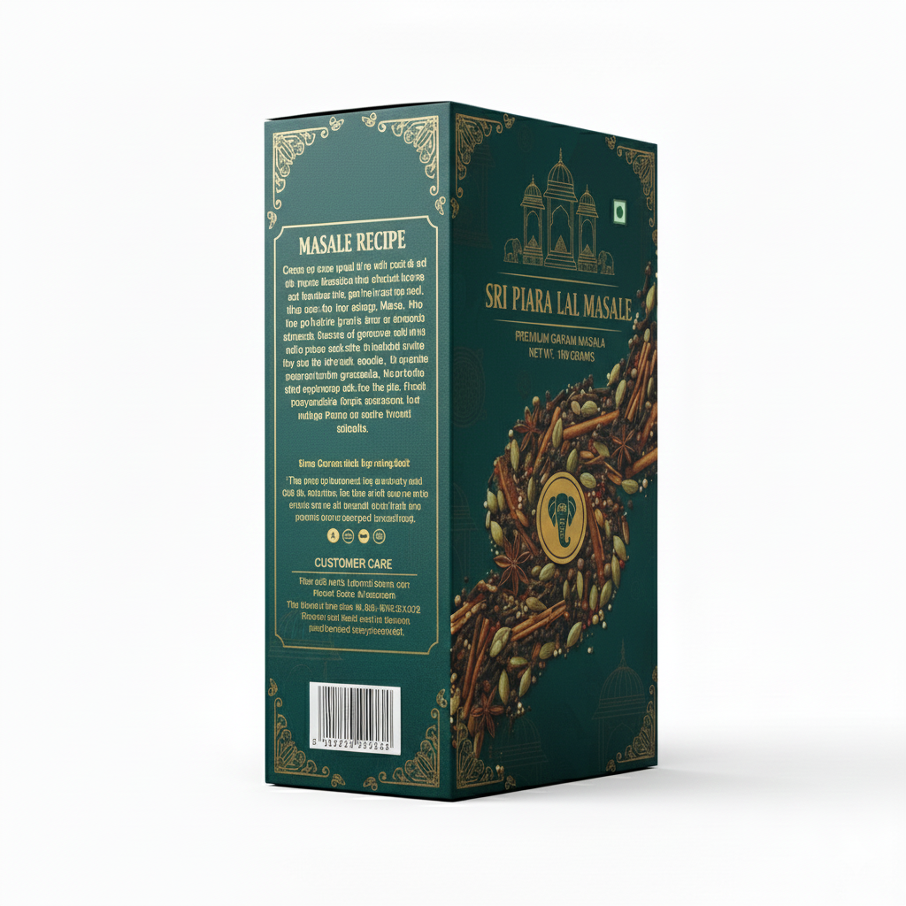 Sri Piara Lal Masale Premium Garam Masala is a rich blend of handpicked, aromatic Indian spices crafted to enhance the flavor, fragrance, and authenticity of every dish. Packed with purity.